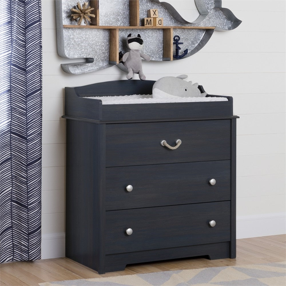 Nautical Nursery 3 Drawer Rope Handle Baby Changing Table in Dark Blue