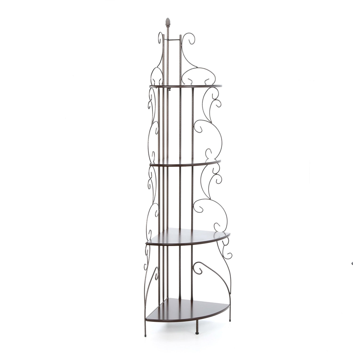 - Ornate 4-Tier Metal Corner Bakers Rack Kitchen Dining Shelf