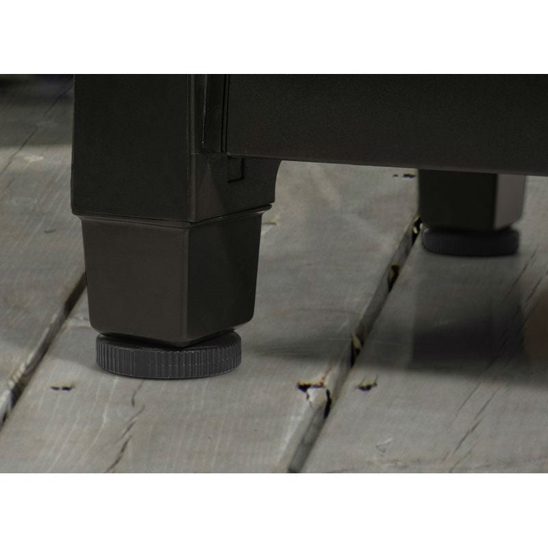 Ideal for indoor or outdoor use Side hangers provide extra space for utensils and accessories Two casters offer smooth portability Adjustable legs provide greater stability on uneven surfaces Bar Shape: Straight Countertop Material: Metal