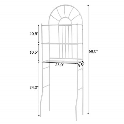 Over Toilet Bathroom Space Saving Storage Shelving Unit in White Metal Finish Brand new and high quality Sturdy and reliable Simple and concise 3-tier shelves, providing large storage space for your bath supplies Made of sturdy powder-coated iron pipe Durable for a lifelong use Suitable for humid environments Ideal for maximizing your bathroom space Assembly required Color: White Material: Iron Overall Size:23.2"L×10.2" W×68.1"H Weight capacity of each shelf: Approx 17Lbs Package includes: 1 × Toilet Shelf Sturdy & Durable 3 shelf over toilet storage is made of Iron, which is powder coated The frame is anti-corrosion, and will offer years of use Modern & Compact Over-toilet shelf comes with modern design, and this item saves much space Over toilet shelf design doesn't take extra space. You can put your towel, bath products on it, clean and tidy Installation & Dimension This shelf is easy to install Everyone can assemble this item in hours with the hardware we offered Overall Size:23.2"L×10.2" W×68.1"H Distance Of Each Shelf: 10.4" Dimension Of The Each Shelf: 23.0"L X 9.1"W Net Weight: About 11 Lbs Weight Capacity Of Each Shelf: Approx 17Lbs