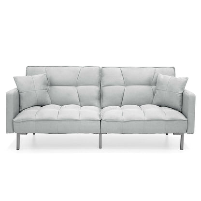 Plush Gray Split-Back Design Convertible Linen Tufted Futon w/ 2 Pillows