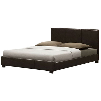 Queen size Dark Brown Faux Leather Upholstered Platform Bed Frame with Headboard