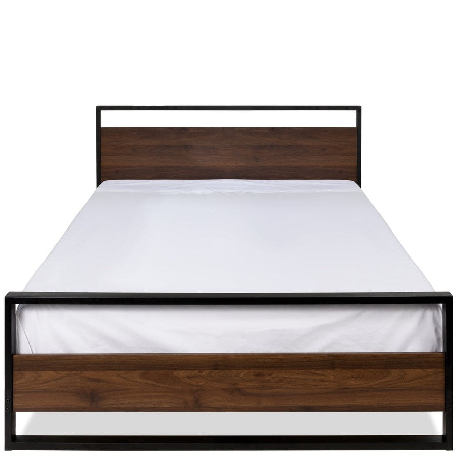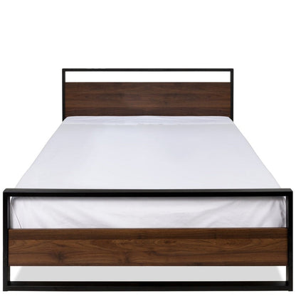 Queen size Farmhouse Metal Wood Platform Bed Frame with Headboard Footboard