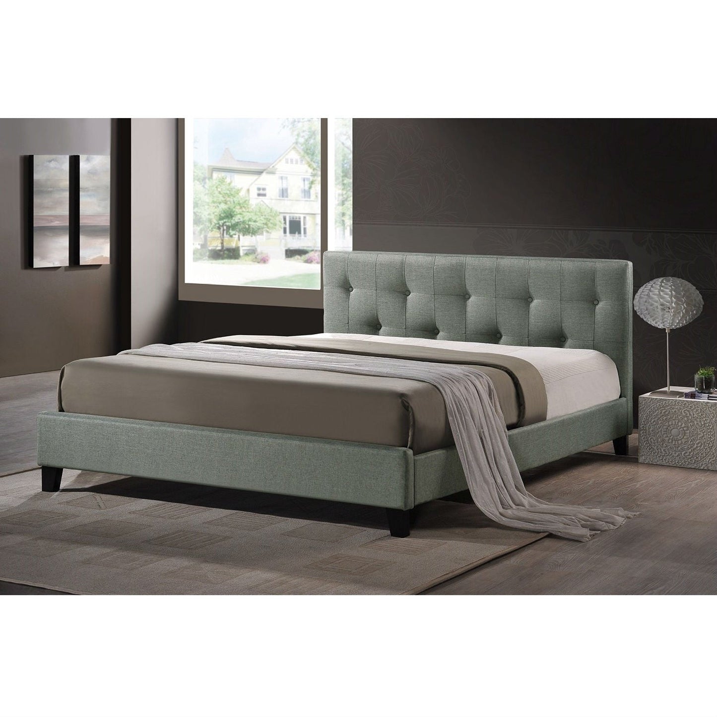 - Queen size Gray Linen Upholstered Platform Bed with Headboard