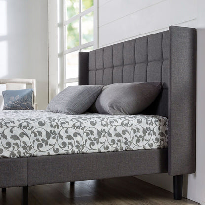 Queen size Grey Wingback Upholstered Platform Bed