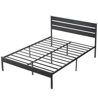 Queen size Industrial Platform Bed Frame with Wood Slatted Headboard in Black
