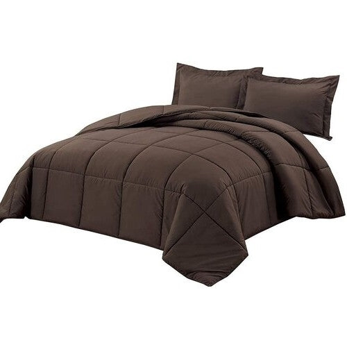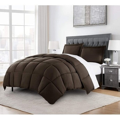 Queen Size Reversible Microfiber Down Alternative Comforter Set in Brown