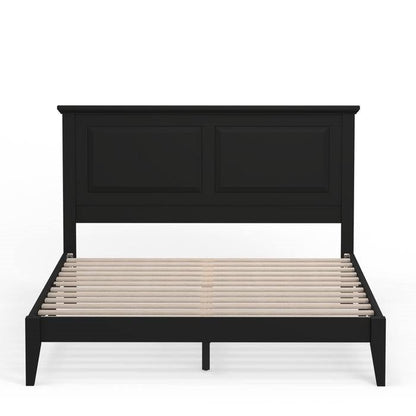 Queen Traditional Solid Oak Wooden Platform Bed Frame with Headboard in Black