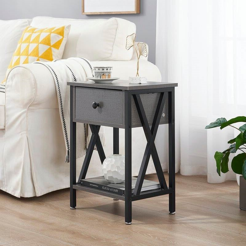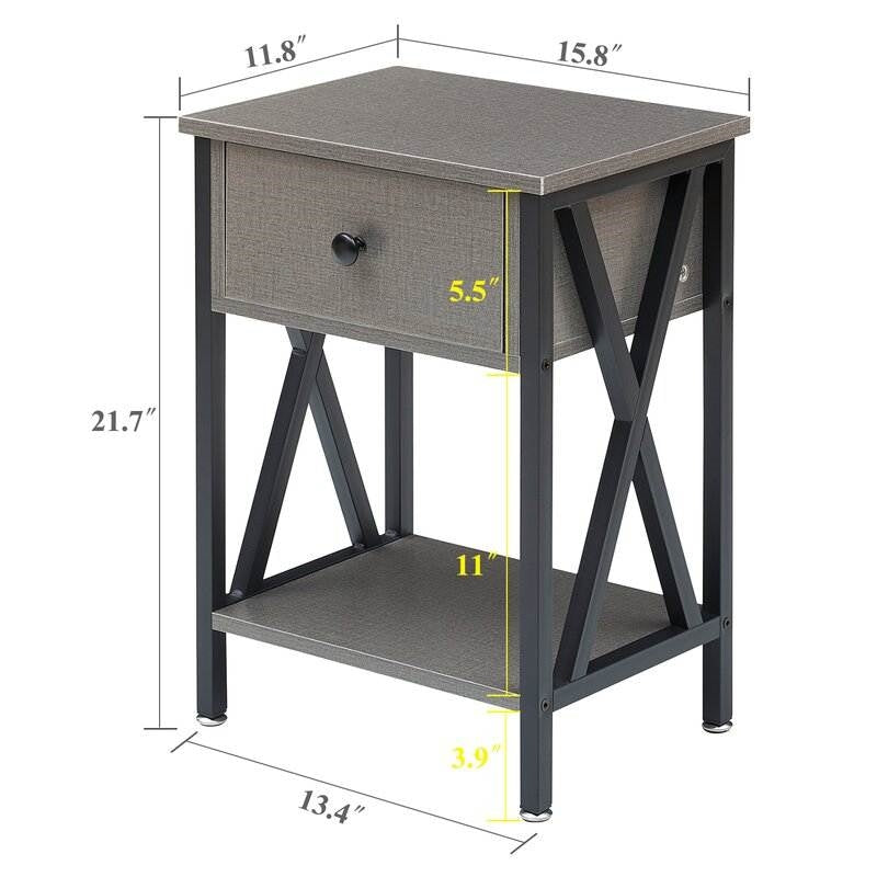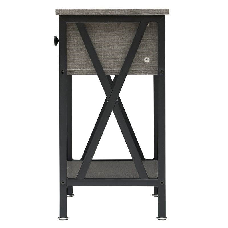 Set of 2 - 1 Drawer Nightstand in Grey and Black Wood Finish