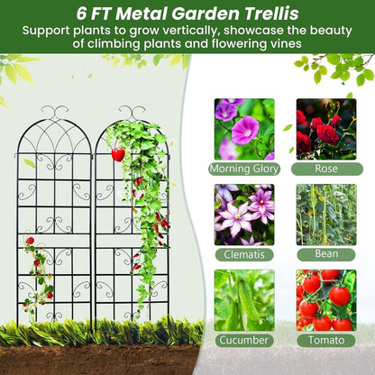 - Suitable for Various Climbing Plants: The 6 ft metal garden trellis is perfect for supporting plants grow vertically, making your favorite plants thrive and flourish. Whether for morning glories, Chinese roses, clematis, beans, cucumbers, tomatoes, or other climbing plants, it can be a perfect choice.