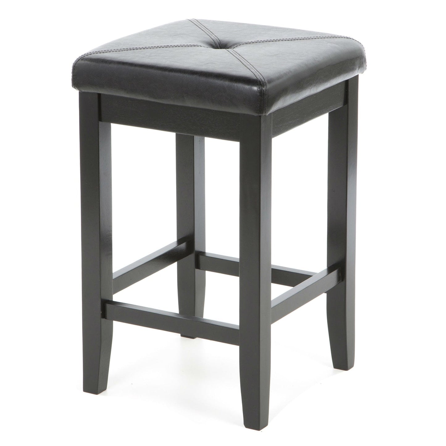 - Set of 2 - Black 24-inch Backless Barstools with Faux Leather Seat
