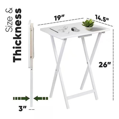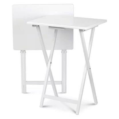 Set of 2 - Folding TV Tray Table in White Wood Finish