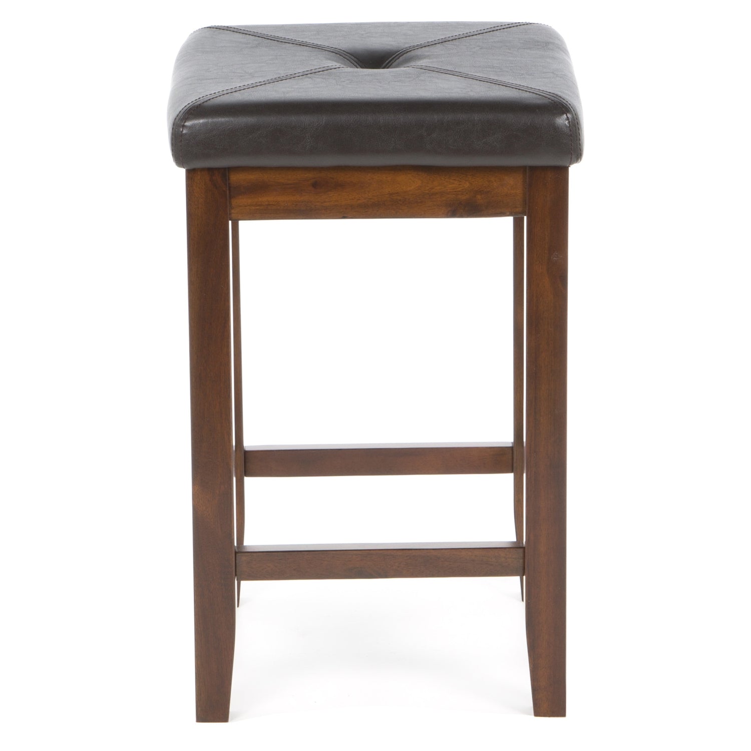 - Set of 2 - Vintage Mahogany Bar Stools with Faux Leather Cushion Seat