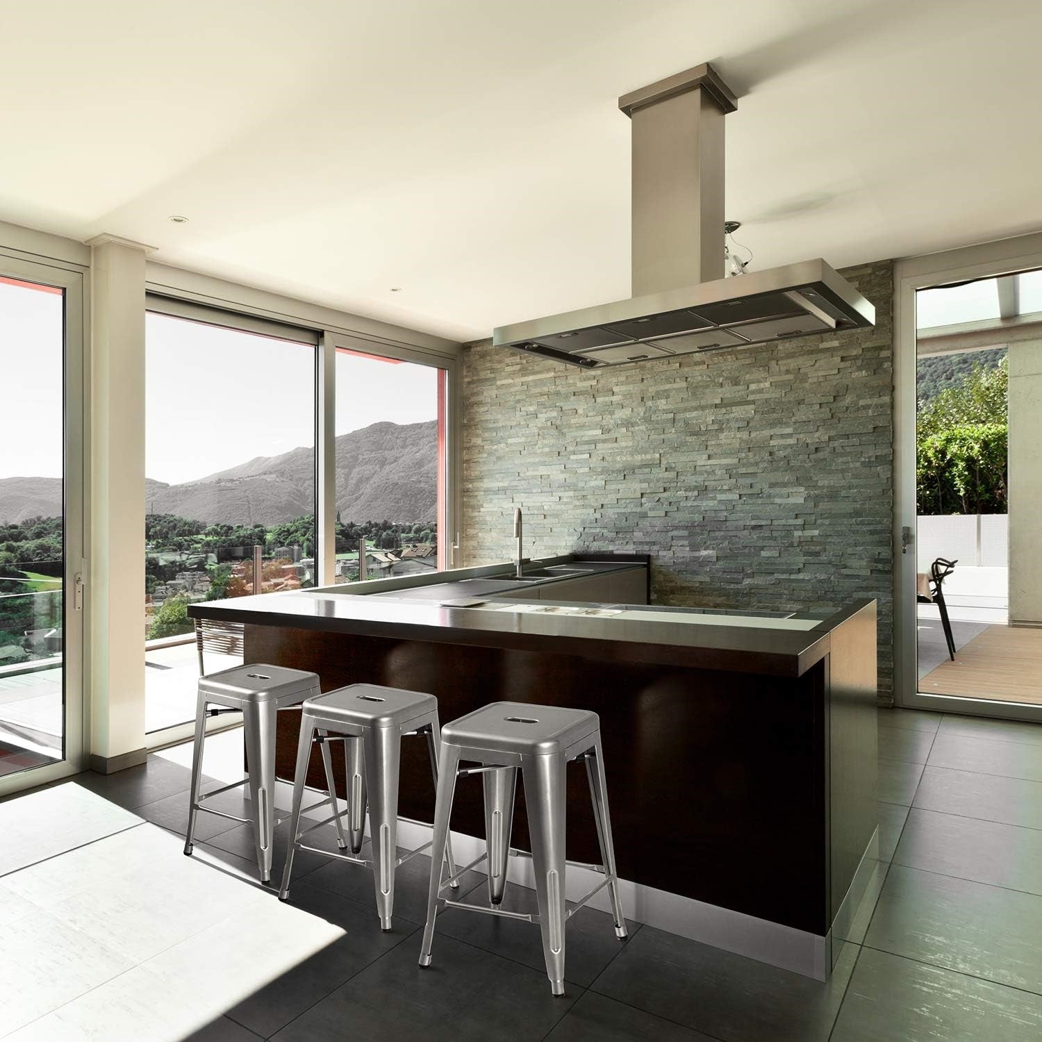 - Suitable for Many Spaces: The metal stools can be placed in bistro, café, restaurant, dining room, kitchen. It fits well in many places.