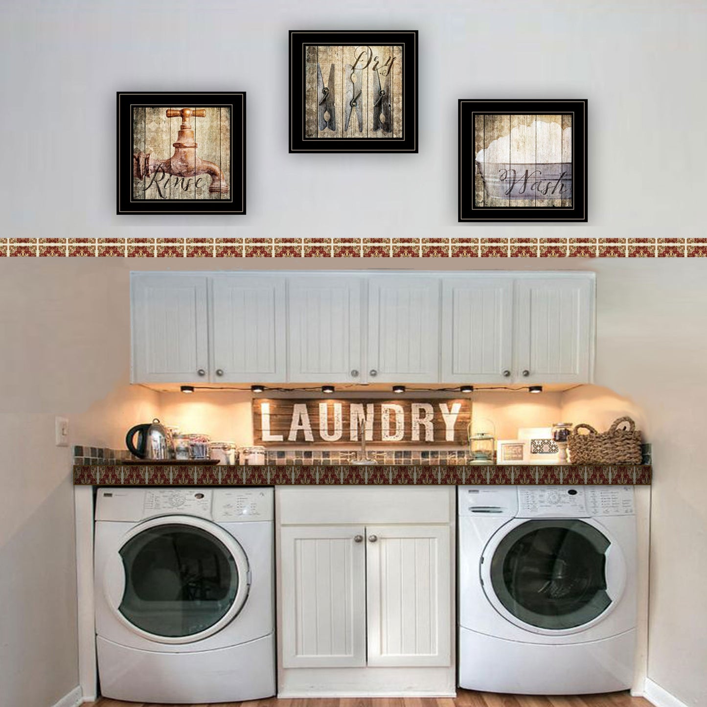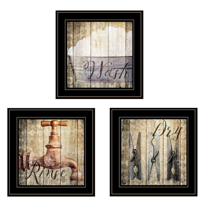 Set Of Three Wash 2 Black Framed Print Bathroom Wall Art
