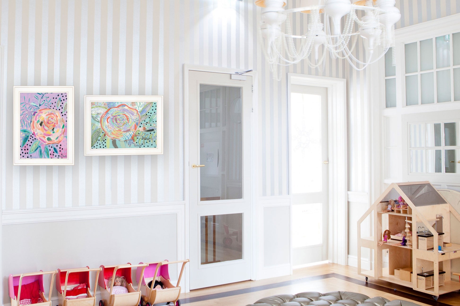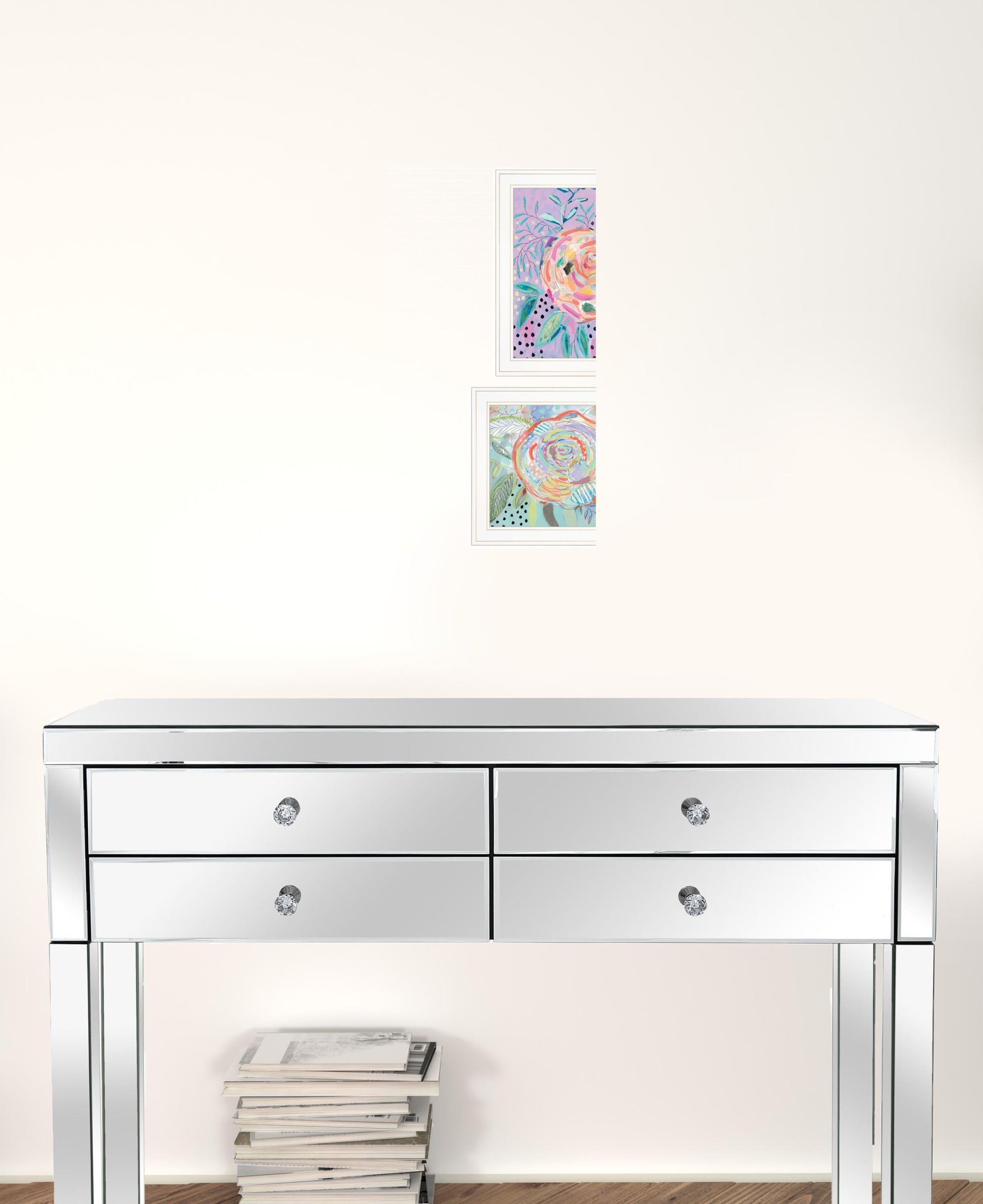 Set Of Two Colorful Big Bloom Abstract Flowers White Framed Prints Wall Art