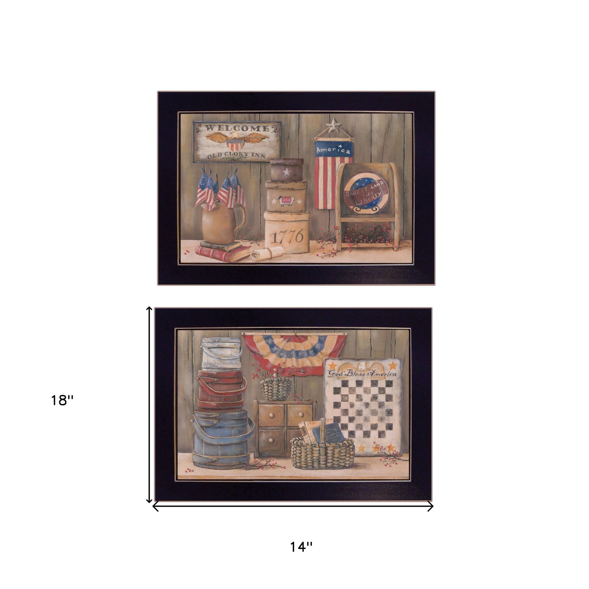 Set Of Two God Bless Or Sweet Land 3 Black Framed Print Wall Art