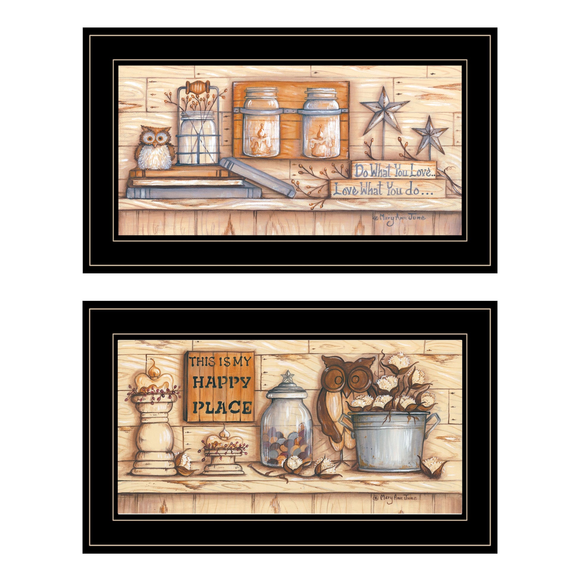 Set Of Two My Happy Place 2 Black Framed Print Wall Art