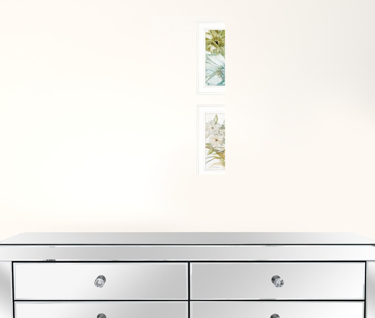 Set Of Two Sea Glass Palette Floral White Framed Print Wall Art