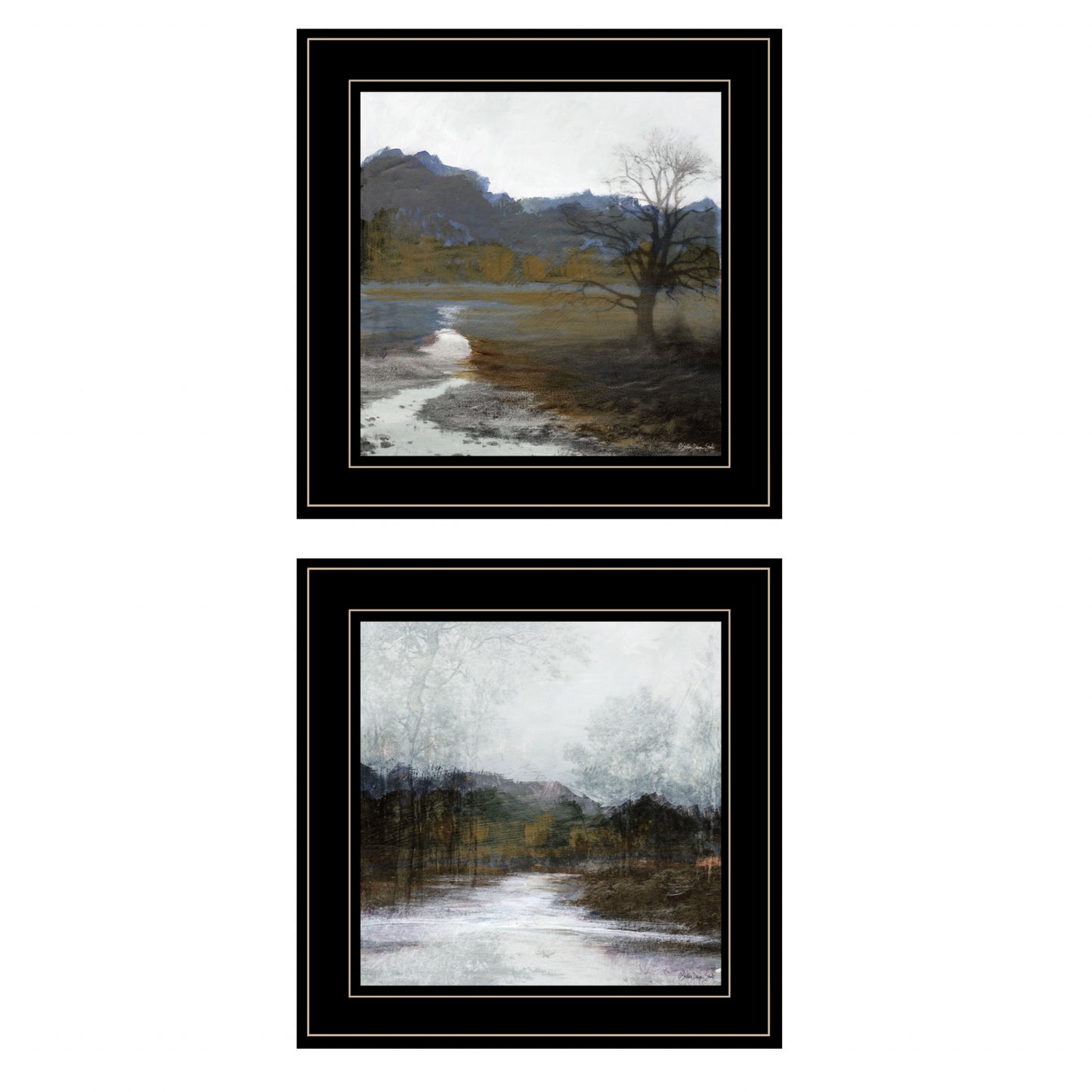 Set Of Two Winter Landscape 2 Black Framed Print Wall Art