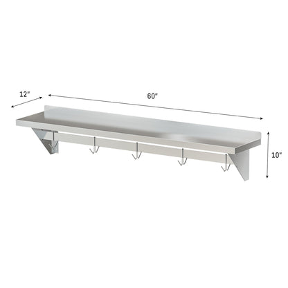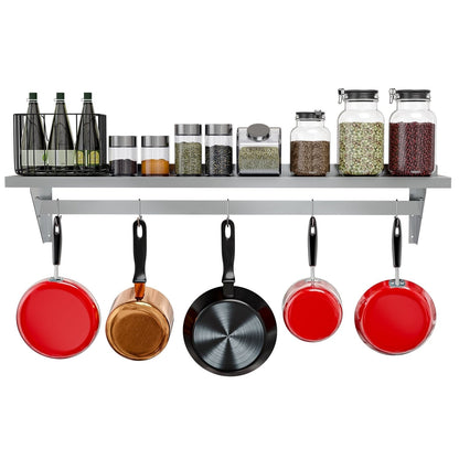 Stainless Steel Heavy Duty Wall Shelf with Pot Rack - 12 inches x 60 inches