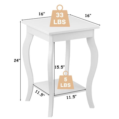 Stylish Nightstand End Table in White Wood Finish - Set of 2