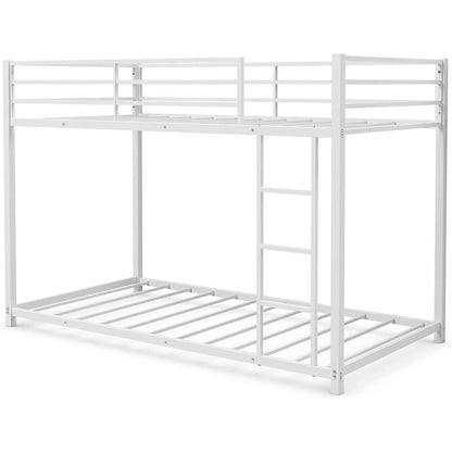 - Twin over Twin Low Profile Modern Bunk Bed Frame in White Metal Finish