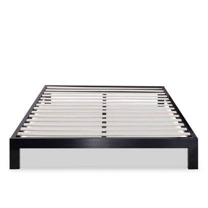 - Twin size Asian Style Black Metal Platform Frame with Wooden Slats