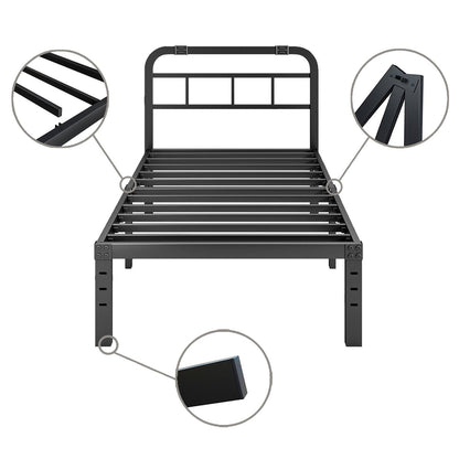 Twin Size Heavy Duty Black Metal Platform Bed Frame with Headboard