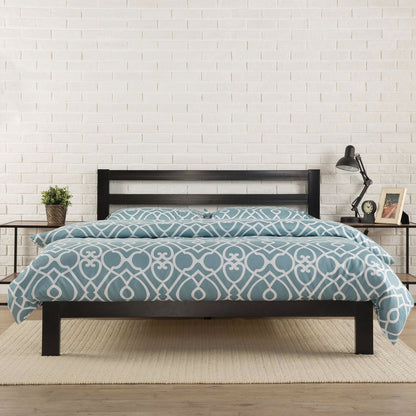 Twin size Modern Metal Platform Bed Frame with Headboard And Wood Support Slats