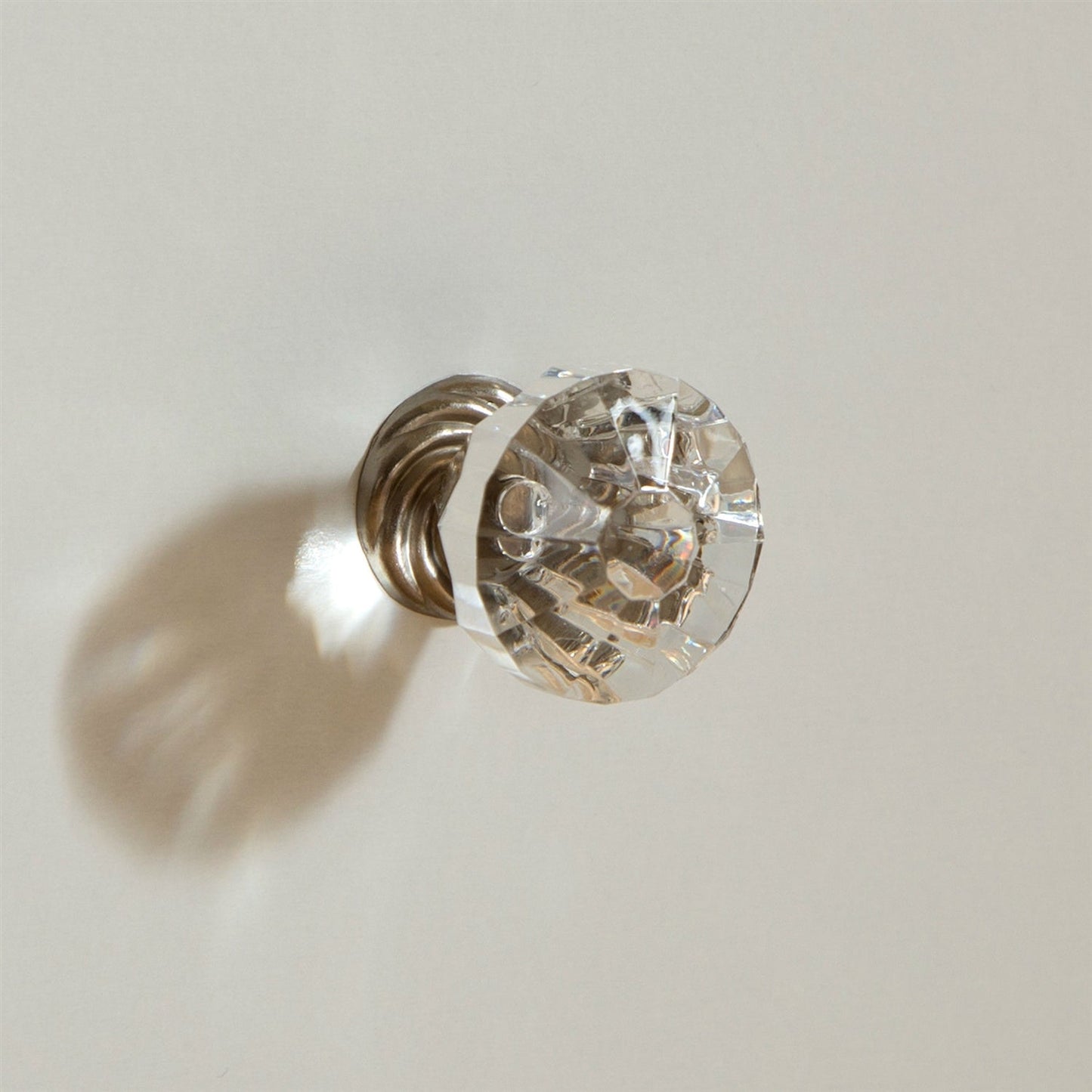 - Three convenient storage drawers adorned with beautiful clear crystal knobs