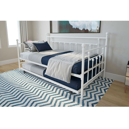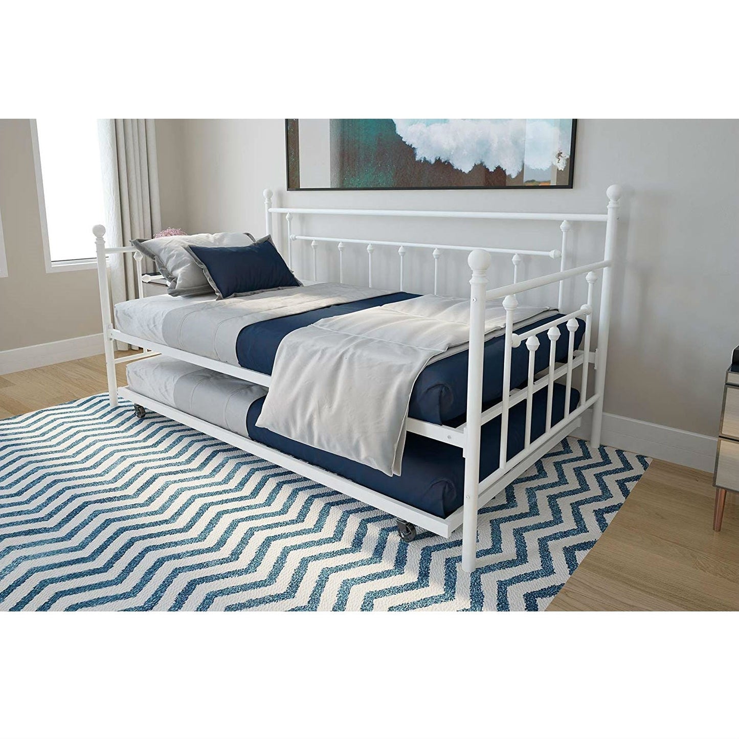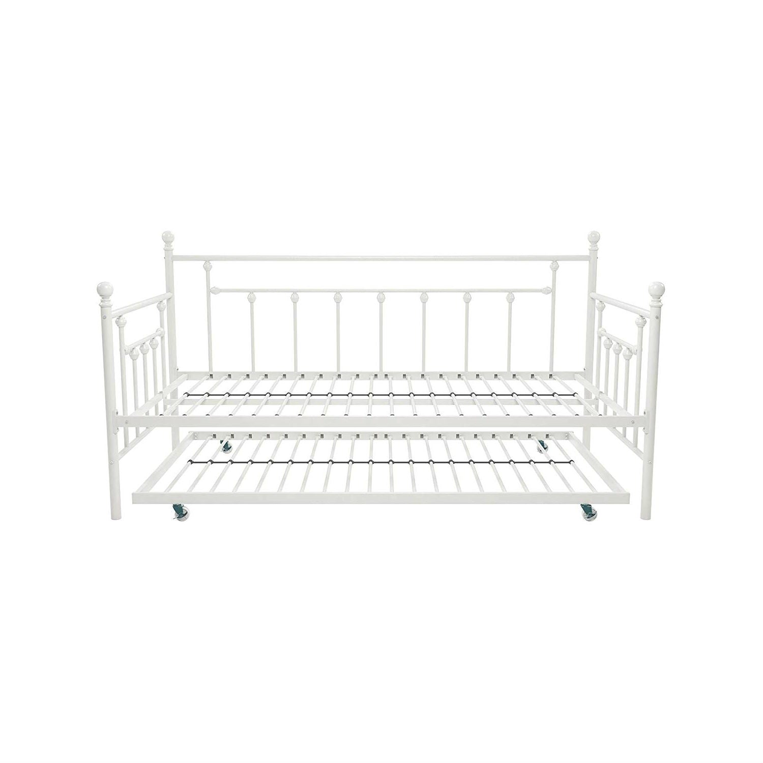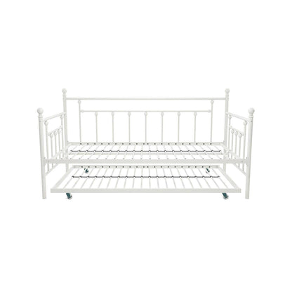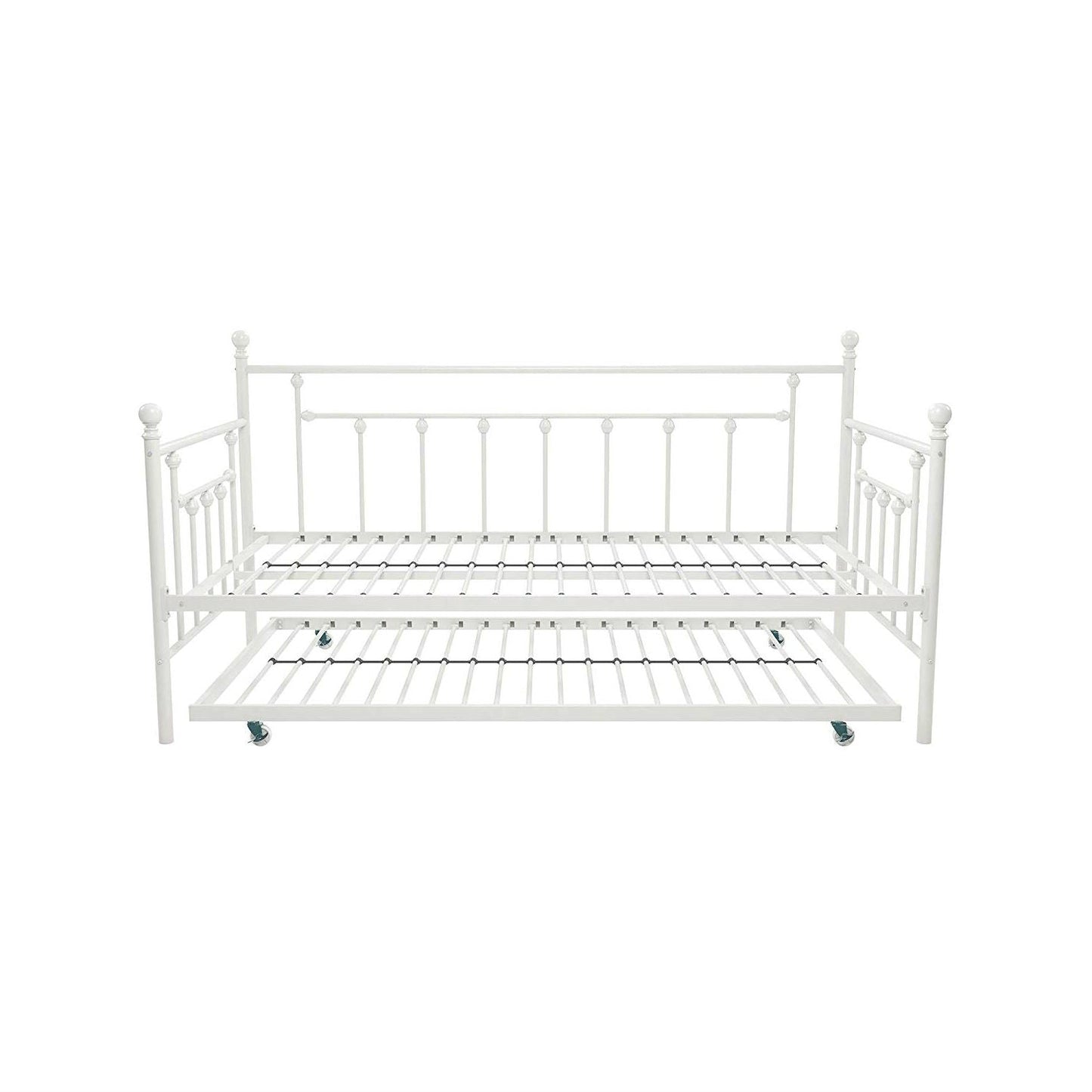 Twin White Metal Daybed Frame with Roll-Out Turndle Bed