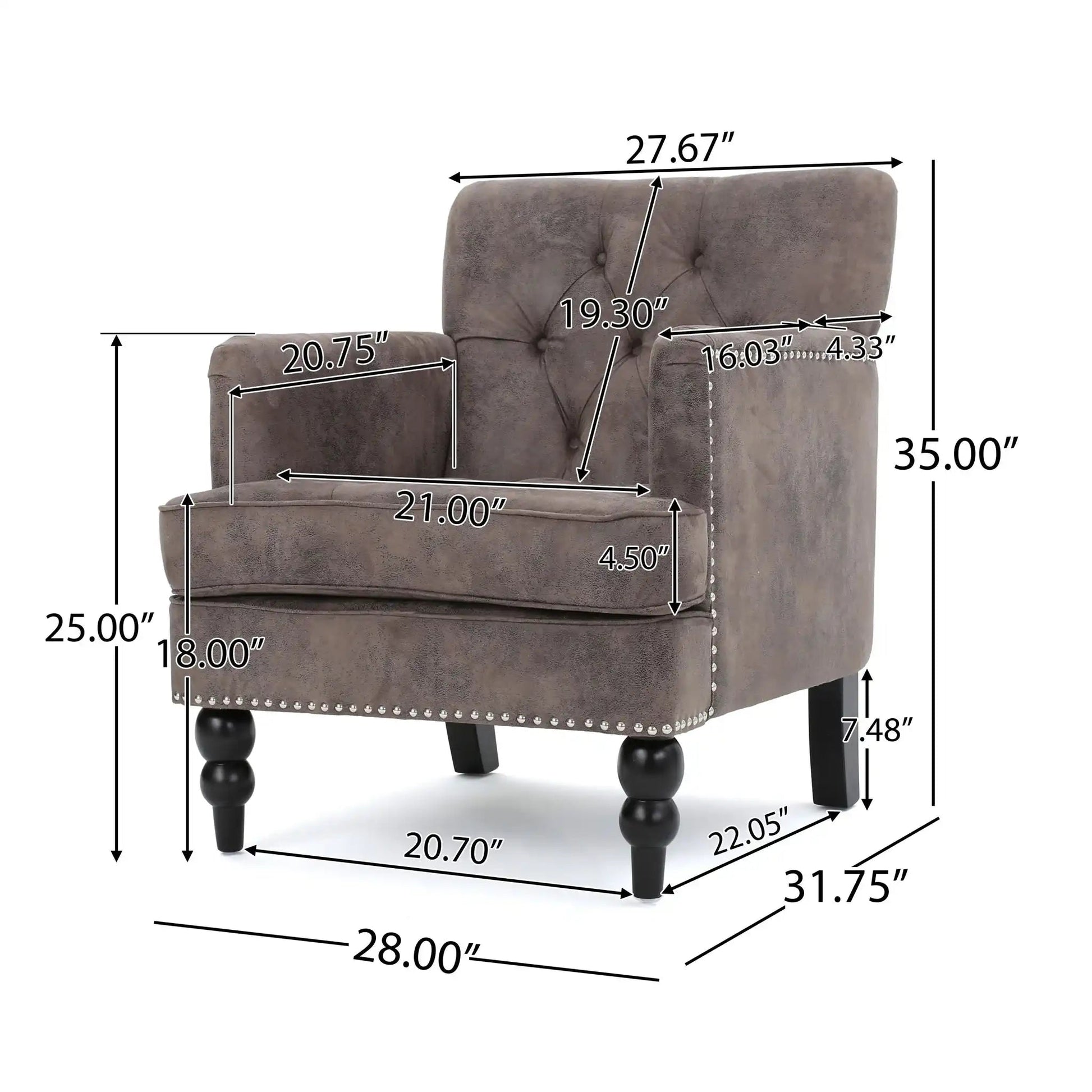 - CONTEMPORARY DESIGN: Our club chair blends contemporary design with comfort, featuring button-tufted stitching, nailhead trim, and turned legs. With a minimalistic yet refined style, it adds modern elegance to any space