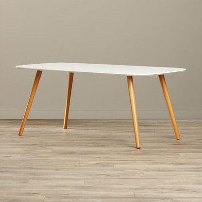 White Top Mid-Century Coffee Table with Solid Wood Legs