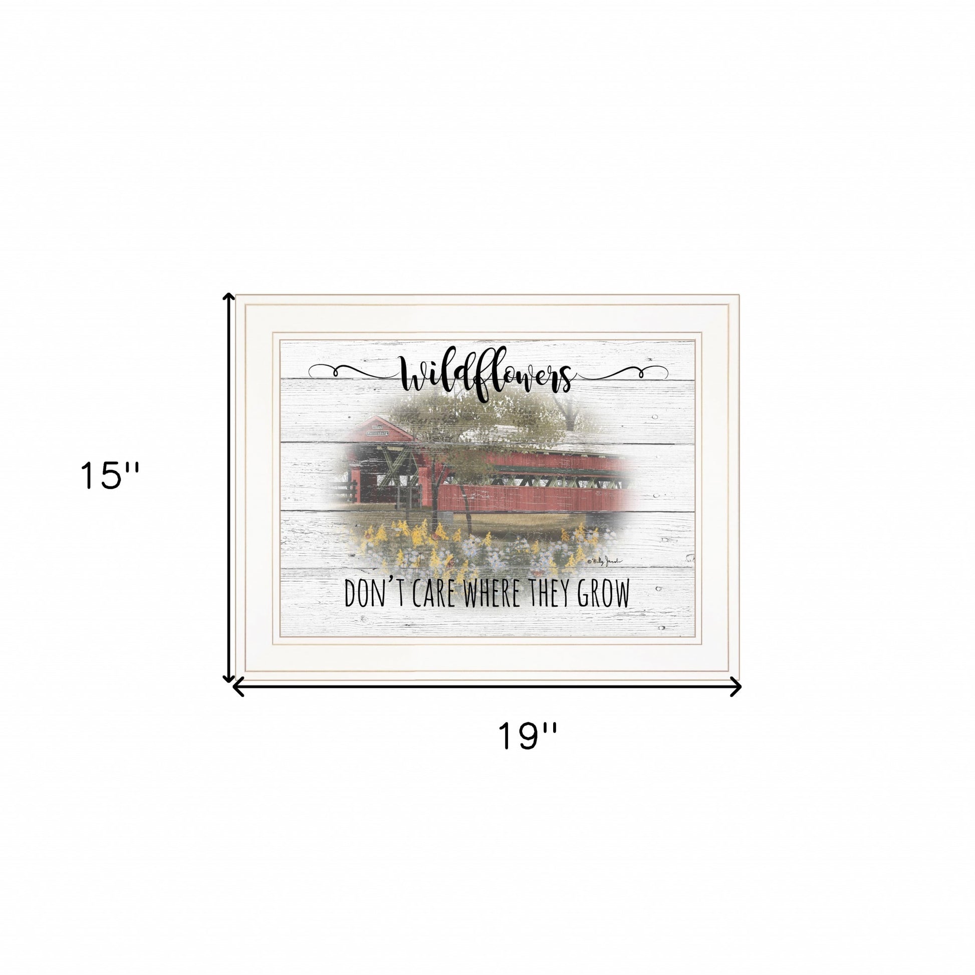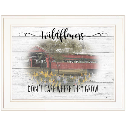 Wildflowers Covered Bridge White Framed Print Wall Art